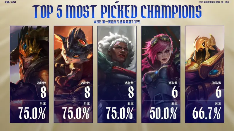 2026LPL第一赛段至今,WBG与AL选取英雄TOP5如图所示;